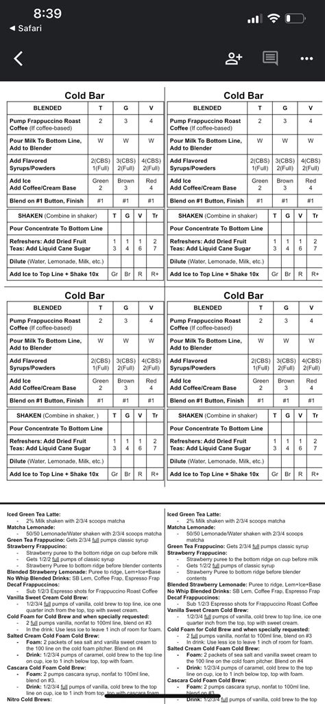 Starbucks Cold Bar Cheat Sheet. Or if you're doing the peppermint mocha frap or salted caramel frap the peppermint and toffee nut would.