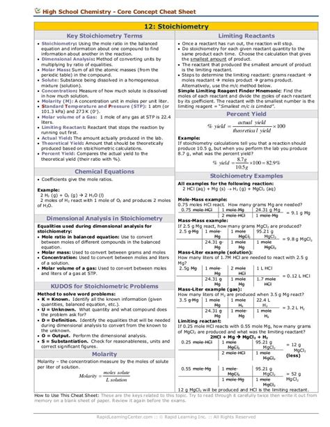 Stoichiometry Cheat Sheet. Web the stoichiometry of a reaction describes the relative amounts of reactants and products in a balanced chemical equation.
