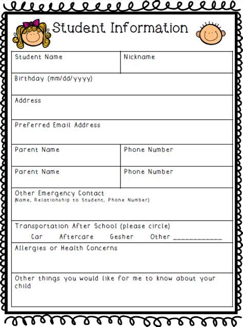 Student Information Sheet Templates at