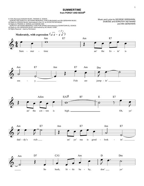 Summertime Lead Sheet. Web free summertime by george gershwin sheet music | download pdf or print on musescore.com 01: