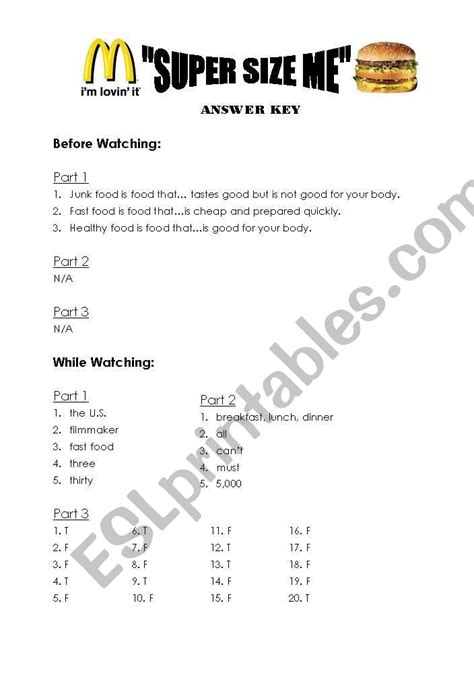 Super Size Me Answer Sheet. Web what happens to morgan after eating fast food for awhile. Web 25 recommended to have less than blank grams of saturated fat supersize morgan would have to blank his meals of asked.
