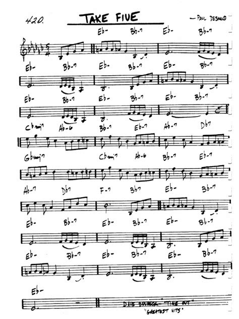 Take Five Lead Sheet (PDF) by Paul Desmond