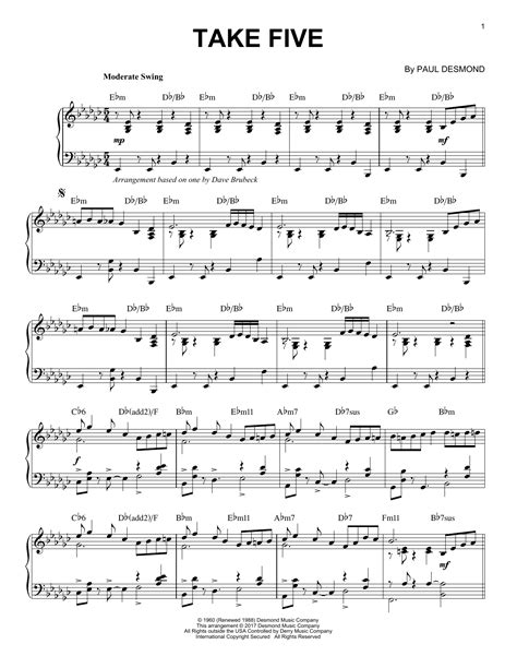 Take Five Sheet Music Dave Brubeck Piano Solo