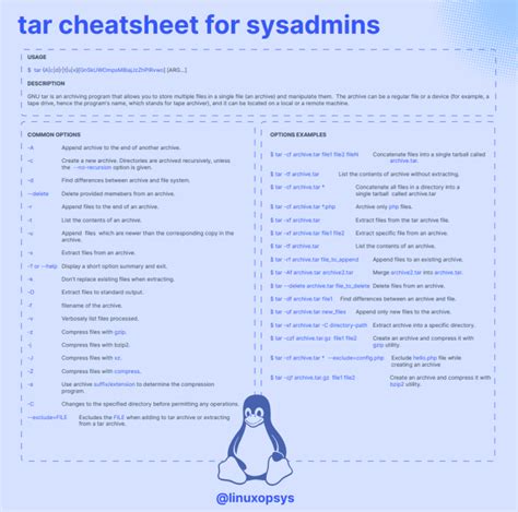 Tar Cheat Sheet. Compress the archive with gzip. It compresses files and directories into an archive file, known as a tarball.