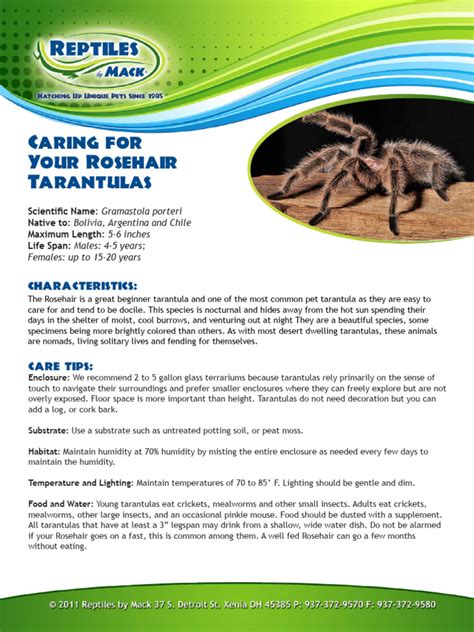 Tarantula Care Sheet. They provide not only information about properly caring for the species in captivity,.