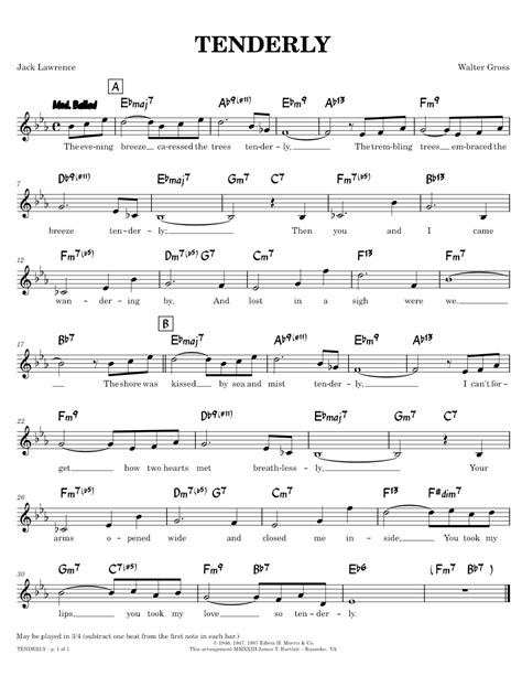 Tenderly Lead Sheet. 1 part • 2 pages • 01:54 • jun 30, 2021 • 868 views • 20 favorites. Web download and print in pdf or midi free sheet music for tenderly by walter gross arranged by terry glanfield for piano (solo)