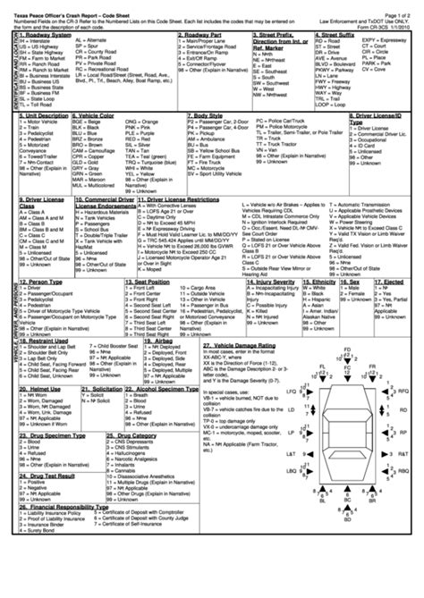 Texas Peace Officer Code Sheet. Each list includes the codes that may be entered on the form and the description of each. The crash application was created to allow law enforcement officers to submit the texas peace officer’s crash report (form cr‐3) electronically to.