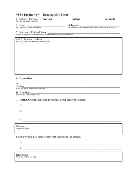 The Breakaway Reading Skill Sheet Answer Key. The breakaway | answer key 1. Students will read a motivational story about an athlete who.