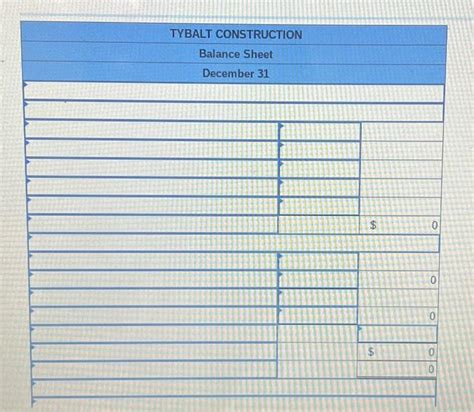 Tybalt Construction Balance Sheet. Number account title debit credit; The adjusted trial balance for tybalt construction as of december 31, 2019, follows.
