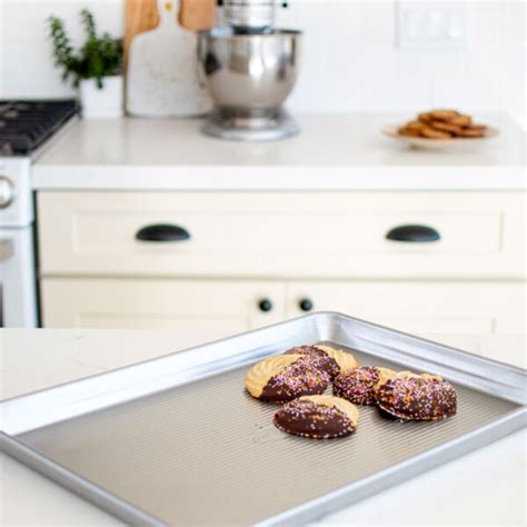 Usa Pans Cookie Sheet. Web details features & materials shipping baking ideas our half sheet pan is one baking pan you will never want to be without! Web 1 2 » half sheet pan $23.99/ea nonstick aluminum half sheet pan $21.99/ea extra large sheet pan $27.99/ea heavy duty.