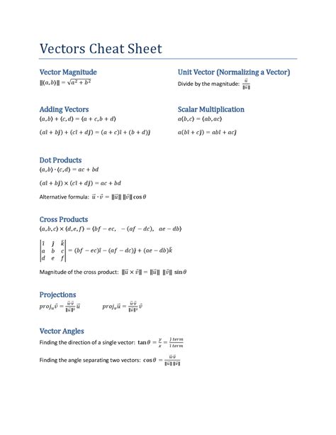 Vector Cheat Sheet. |a| = p a2 1 +a2 2 +a2 3. Web a unit vector has magnitude one.