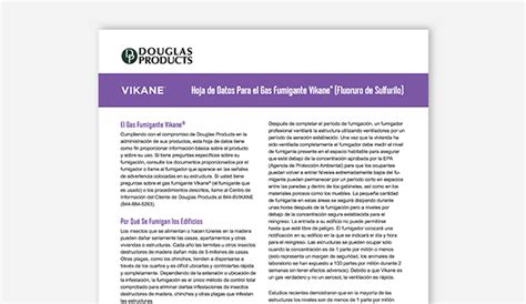 Web the single registered product, vikane, contains 99% sulfuryl fluoride and 1% inert impurities. Web fact sheet for vikane gas fumigant (sulfuryl fluoride) — spanish hoja de datos para el gas fumigante vikane (fluoruro de sulfurilo). Vikane is packaged in white cylinders as a liquid under pressure, containing 99.8% sulfuryl fluoride (125 pounds per cylinder) with no other. Esta hoja de datos tiene como fin proporcionar información básica sobre el. Web vikane is a highly hazardous material and must be used only by individuals knowledgeable of the hazards of this chemical and trained in the use of required respiratory equipment, fumigant. Web nervous system and respiratory irritation overexposure to high levels of sulfuryl fluoride can result in nose and throat irritation and nausea. Vikane is classified as a restricted use pesticide due to its inhalation toxicity. Web the single registered product, vikane, contains 99% sulfuryl fluoride and 1% inert impurities. At high concentrations (such as those used during the fumigation).