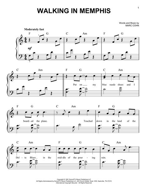 Walking In Memphis Sheet Music Marc Cohn Easy Piano