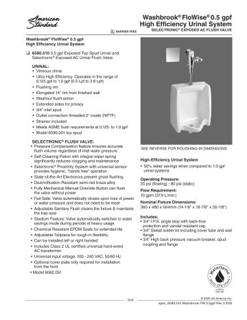 Washbrook Urinal Spec Sheet. Web 2 wall hangers fixture only meets ansi flush requirements at 1.0 gpf 6501.010 top spud 6506.011 back spud nominal dimensions:.