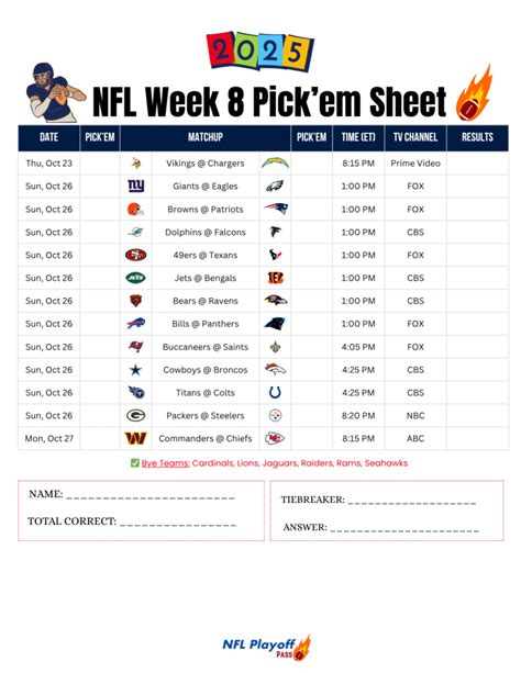 Week 8 Nfl Pick Em Sheet Printable Printable Word Searches