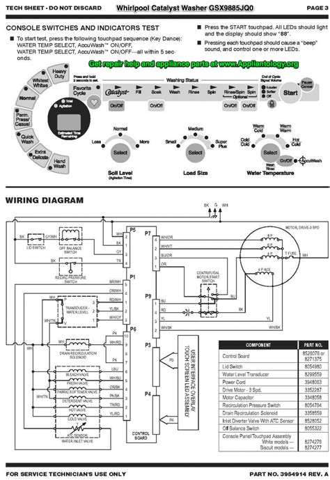 Whirlpool Catalyst Washer GSX9885JQ0 Tech Sheet The Appliantology