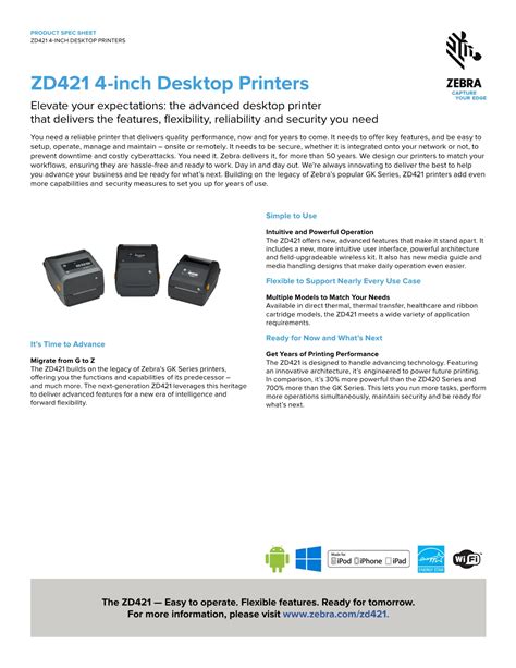 Zd421 Spec Sheet. Web the zd421 offers new, advanced features that make it stand apart. The advanced desktop printer that delivers the features, flexibility, reliability and security you need you need.