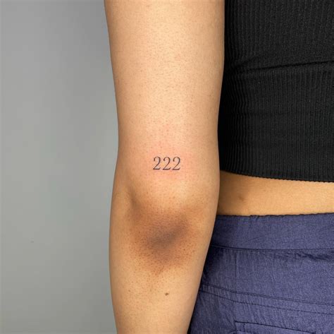 Tattoo of the number "222" located on the tricep.