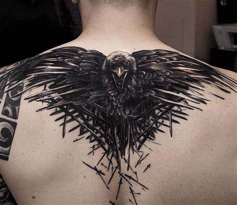 Crow Tattoo Back. The back offers a large, flat canvas for intricate crow tattoos. Crow tattoos may be the most symbolic creations that mankind has ever.