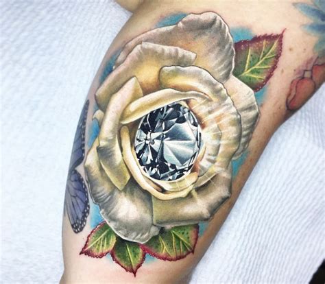 Diamond Rose Tattoo. For a more intricate design, a diamond and rose tattoo can be a stunning choice. Diamond behind the ear tattoo;