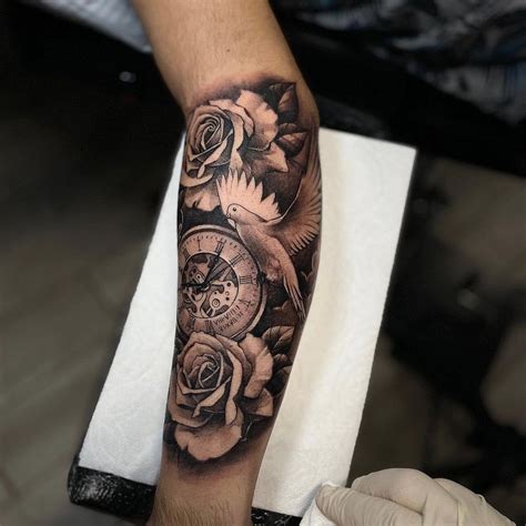 11+ Tattoo Rose Clock Dove Rose tattoos, Rose tattoos for men, Hand