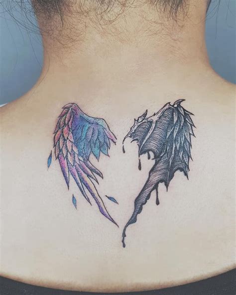 53 Ideas For Half Angel Half Demon Wings Tattoos And Meanings Inked Celeb