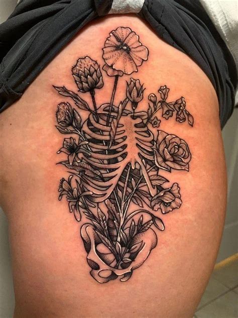 Flower Skeleton Tattoo. A skull tattoo can represent a number of different things, including death, decay, or. Web a skeleton hand holding a heart tattoo is a beautiful way to represent eternal love.