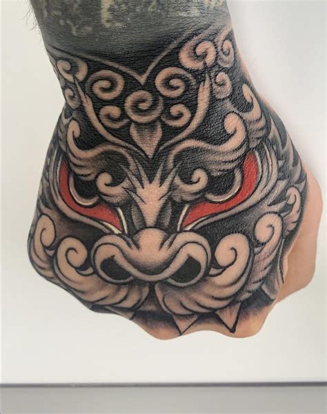 Foo Dog Tattoo 71 Japanese hand tattoos, Foo dog tattoo, Hand tattoos