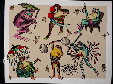 Tattoo Flash Frog Sticker Pack Etsy