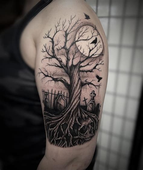 Haunted Tree Tattoo. Web all of the elements of a classic halloween scene are depicted in this colorful tattoo by @amandaherrenartworks: Get inspired and try out new things.