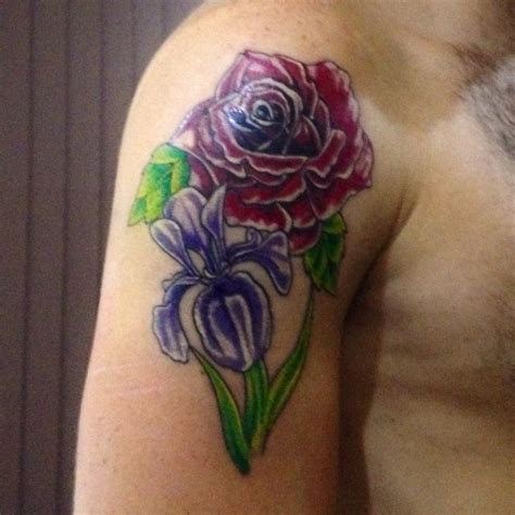 Iris And Rose Tattoo. Wisdom and knowledge in many cultures, the iris is. Iris germanica) is the february birth flower and a unique floral tattoo design linked to hope, wisdom,.