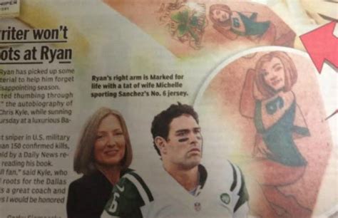 Mark Sanchez Tattoo. Web a vacationing rex ryan was spotted and photographed thursday sporting a tattoo of a woman wearing only a green. (splash news) while vacationing in.