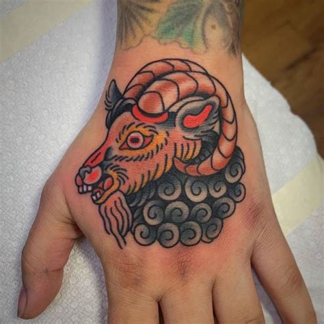 Ram hand tattoo done by javierfranko www.otzi.app Traditional Tattoo