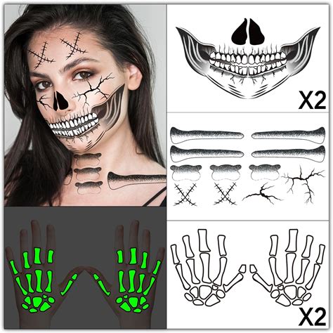 Skeleton Face Tattoo Temporary. Web check out our skeleton face temporary tattoo selection for the very best in unique or custom, handmade pieces from our party. Press tattoo firmly onto clean,.