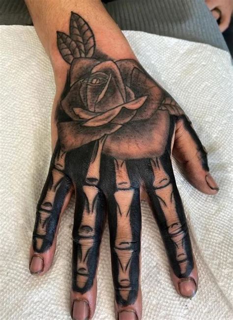 Skeleton Rose Hand Tattoo. Web the black traditional tattoo depicts a skeleton hand tenderly holding a rose. It’s a striking juxtaposition of life and.