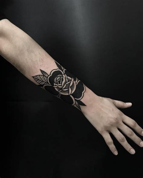 Solid Black Rose Silhouette tattoo on forearm by Ben Licata TattooNOW