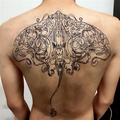 Stingray Back Tattoo. Realistic gray ink ocean stingray fish tribal tattoo on back; We’ve selected 70 of the best designs with stingrays in different styles and organized.
