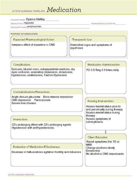 Ati Medication Template Haloperidol. Web the drug can show its therapeutic effect only after the therapeutic c ss is reached in the blood. Web ati medication card template active learning template: