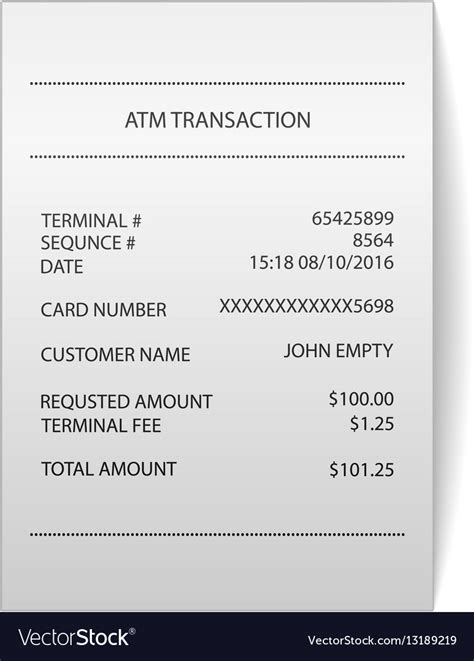 Editable Paper Sales Printed Receipt Bill Atm Template Stock Vector Atm