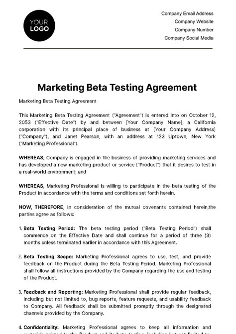 Beta Test Agreement Templates at