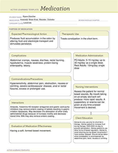 Web view ati_active larning template_bisacodyl.pdf from nur 198 at long island university, brooklyn. Web last updated on jun 7, 2023. Web view ati_active larning template_bisacodyl.pdf from nur 198 at long island university, brooklyn. Medication student name_____ bisacodyl (ducolax). Web bisacodyl is a medication used in the management and treatment of chronic or functional constipation. Web bisacodyl medication template.pdf interested in bisacodyl medication template.pdf ? Web detailed bisacodyl dosage information for adults and children. Some forms of bisacodyl can be given to. Web active learning templates therapeutic procedure a advise pts, other than those with spinal cord injuries, that laxa琀椀ves. Medication student name_____ bisacodyl medication_____. Web most adults and children 12 years and older can safely take it.