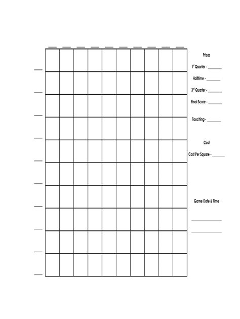 Block Pool Template. Free super bowl sheets for your office pool or super bowl party. 50 square grid for the big game.