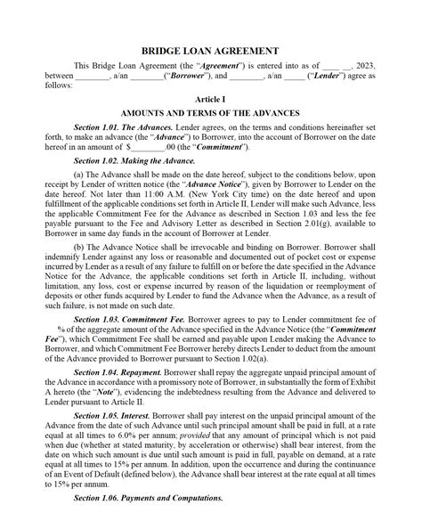 Bridge Loan Agreement Loans Stocks