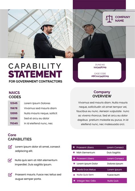 Capability Statement Template For Government Contractors. Web core capabilities description of major services offered federal small business certifications contract vehicles in which you participate (federal and state) state. This section should highlight your company's past performance on relevant contracts or projects.