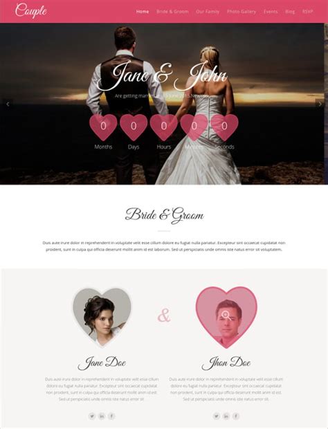 Couple Website Template. Web free download the biggest collection of free website templates, layouts and themes. Pick from a collection of beautiful wedding website templates to showcase your big day.