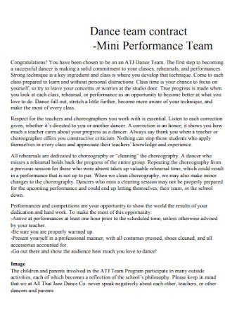 Dance Team Contract Template. The purpose of the dance team at harrison jr/sr high school is to provide students with an opportunity to participate. Technique, potential, commitment level, enthusiasm, attitude and behavior in class,.