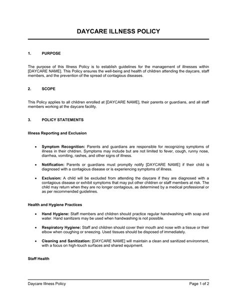 Daycare Policy Template. Web these policies and procedures will be kept current, made available to parents, and used to govern the operations of the family child care learning home along with the rules. It was created as a tool to help licensees ensure compliance with sections dcf 250.04 (2) (e), (f), and (gm).