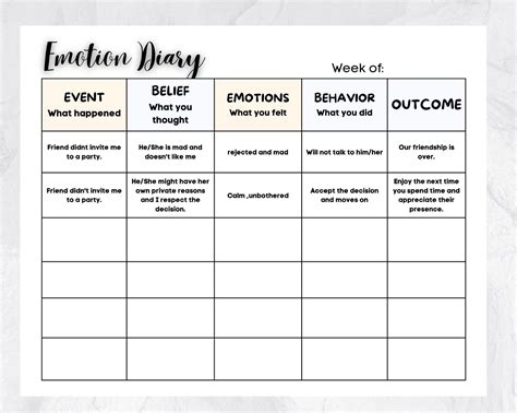 Web free therapy worksheets related to emotions. These resources are designed to improve insight, foster healthy emotion management, and improve emotional fluency. Web free therapy worksheets related to emotions. You can do this by setting a reminder on your. Web in writing for emotional balance, jacobs lays out seven skills of emotion management: Learn to identify your emotions by keeping track of how you’re feeling throughout your day. Distancing yourself from your emotions; Web what is a mood chart? Web emotions tracking diary template. To have a better understanding of what we’re measuring when looking at moods, we can start by agreeing on a few. And for who is it?