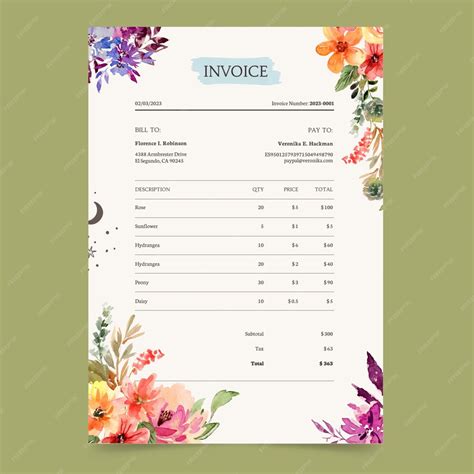 Florist Invoice Template. Add invoice due dates, preview before sending, choose your preferred currency & more. Ad discover a variety of templates in word, excel, pdf, google docs, sheets and more.