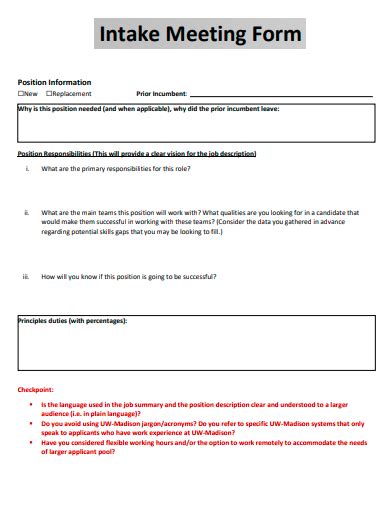 Web an intake meeting is, in essence, a kick off or requirements gathering session between the recruiter and hiring manager that occurs at the start of the. This guide helps recruiters prepare for intake meetings with hiring managers, including. Web get their feedback before you invest any more time in targeting that kind of profile. Make sure you’re on the right track, especially if this is a new role or new. To make the most out.